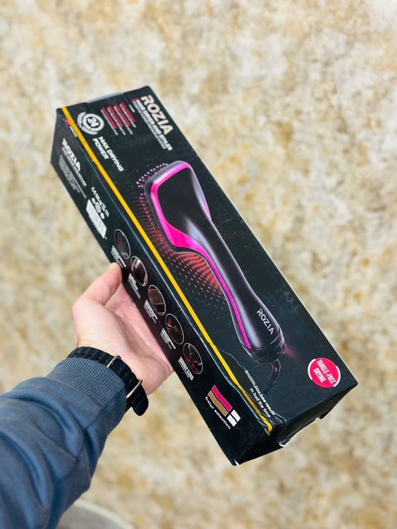 سشوار برسی روزیا مدل HR8113 با ترکیب سشوار و برس، فرآیند خشک کردن و شانه کردن مو را همزمان انجام میدهد و به افزایش سرعت در آرایش مو کمک میکند.